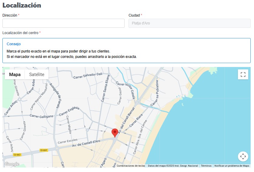 Es muy importante que te asegures que el punto del mapa está exactamente en el lugar donde recibes a los clientes.